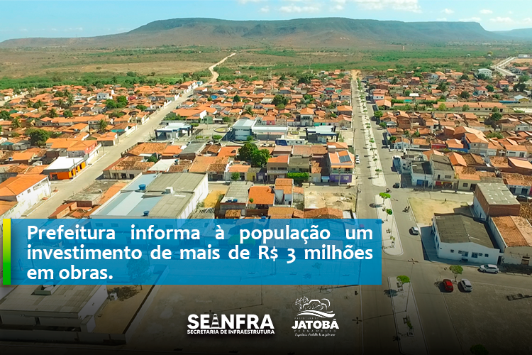 A Prefeitura Municipal de Jatobá, por meio da Secretaria de Infraestrutura, vem a público anunciar um investimento de mais de R$ 3 milhões em obras para a nossa cidade.